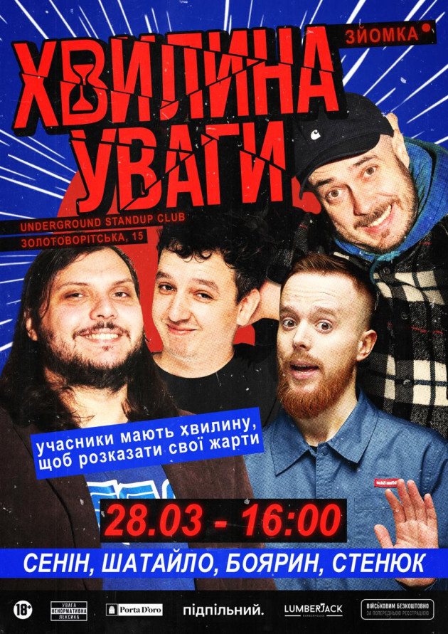 Важливо: Під час події буде проходити зйомка! Просимо поважати виступи коміків і комфорт інших глядачів. Гучні розмови, викрики або неналежна поведінка можуть стати підставою для відмови у перегляді шоу без повернення коштів за квитки.