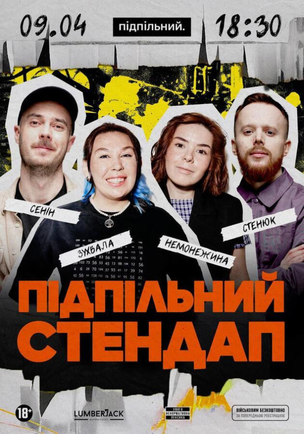*вхід для бійців ЗСУ та ТРО - безкоштовний (за попереднім записом в інстаграм @undergroundstandupkyiv)