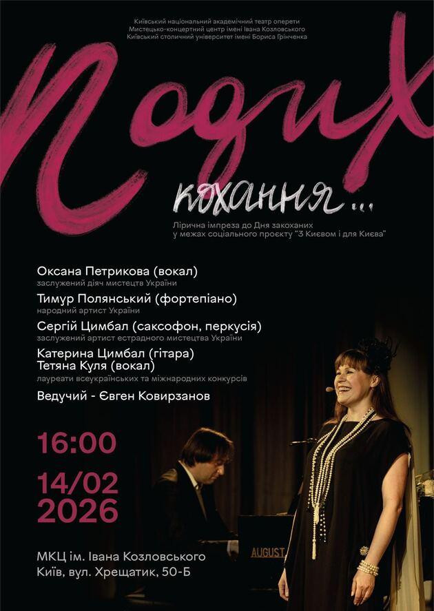 Запрошуємо та чекаємо на вас 14-го лютого 2026 року у МКЦ ім. І. Козловського (вул. Хрещатик, 50 Б), о 16.00. Створюємо настрій собі та близким в ці буремні часи