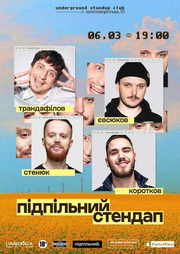 *вхід для бійців ЗСУ та ТРО - безкоштовний (за попереднім записом в інстаграм @undergroundstandupkyiv)
