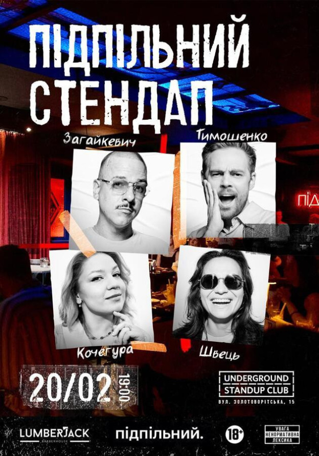 *вхід для бійців ЗСУ та ТРО - безкоштовний (за попереднім записом в інстаграм @undergroundstandupkyiv)