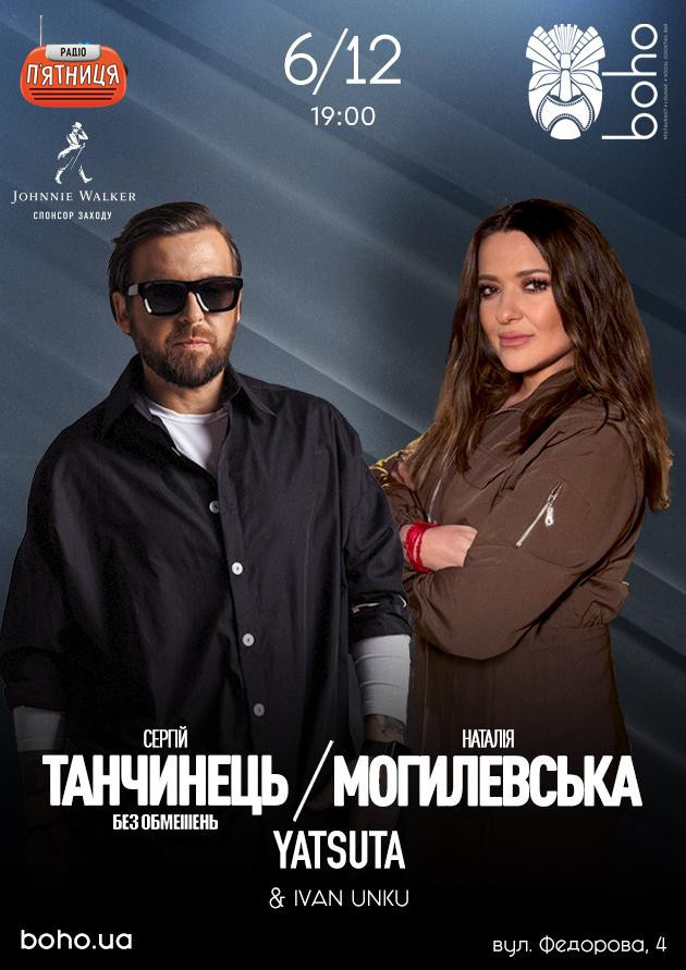 Два легендарні артисти – Сергій Танчинець ("Без Обмежень"), відомий своїми пронизливими хітами, та чарівна Наталія Могилевська, справжня королева української сцени, – об'єднаються, щоб подарувати вам незабутній вечір!