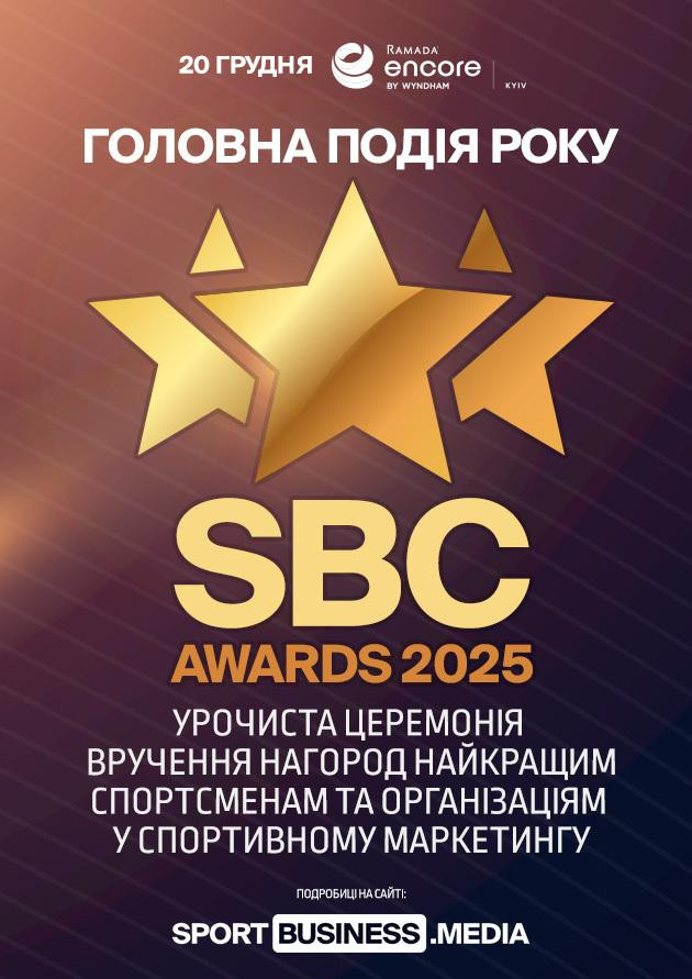 20 грудня відбудеться церемонія SBC Ukraine Awards 2025 – щорічне нагородження найкращих у сфері спортивного маркетингу. Переможців у 23 номінаціях обиратимуть близько 100 членів Журі, серед яких провідні представники спорту, бізнесу, маркетингу та медіа.