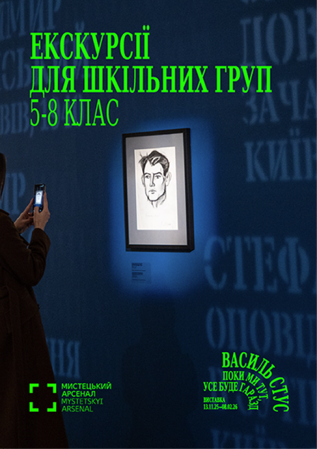 З 13 листопада по 8 лютого у Мистецькому арсеналі триває виставка присвячена постаті письменника Василя Стуса – «Василь Стус. Поки ми тут, усе буде гаразд». Запрошуємо шкільні групи відвідати виставку – можете обрати формат, який пасує саме вам!