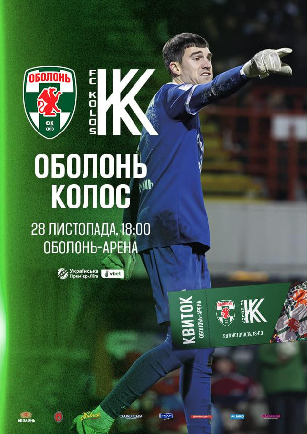 Уже 28 листопада (п'ятниця) о 18:00 наша «Оболонь» прийматиме «Колос» у рамках 14-го туру VBET УПЛ!