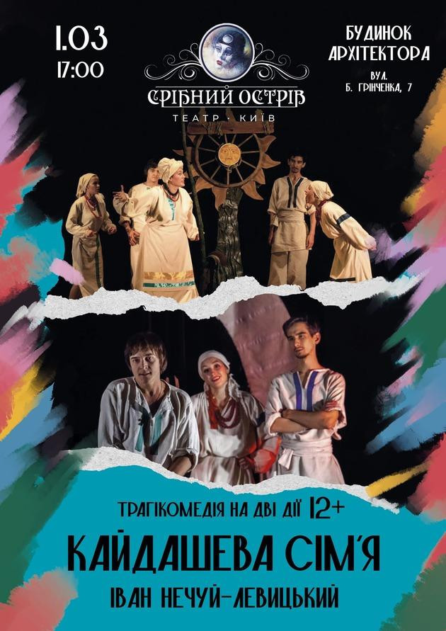4. Театр «Срібний острів» запрошує всіх на справжню українську виставу «Кайдашева сім’я» в жанрі трагікомедії за мотивами повісті Івана Нечуя-Левицького. Розкриття глибокого змісту, вкладеного у твір класиком, сучасний режисерський підхід – ви маєте це побачити! Участь у постановці вистави взяли: