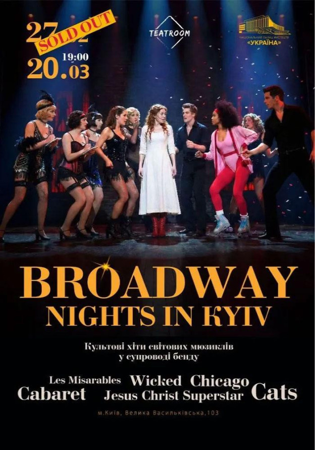 BROADWAY NIGHTS IN KYIV — музично-театральна подія, що об’єднує улюблені хіти світових мюзиклів у живому сценічному виконанні.