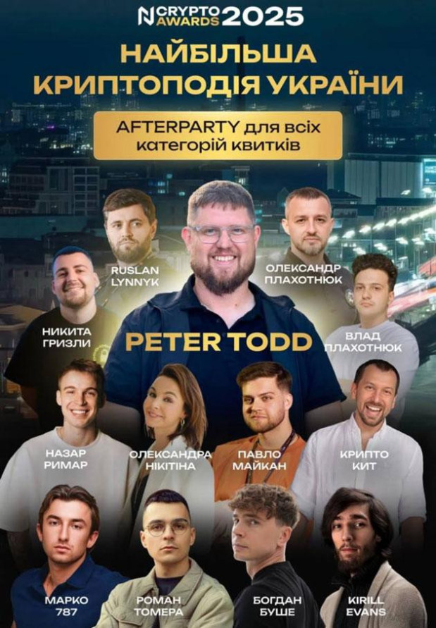 Зірковий хедлайнер, смачний фуршет, бар та неформальне спілкування створять унікальну атмосферу для нових знайомств та колаборацій. Не пропустіть головну криптоподію 2025 року!
