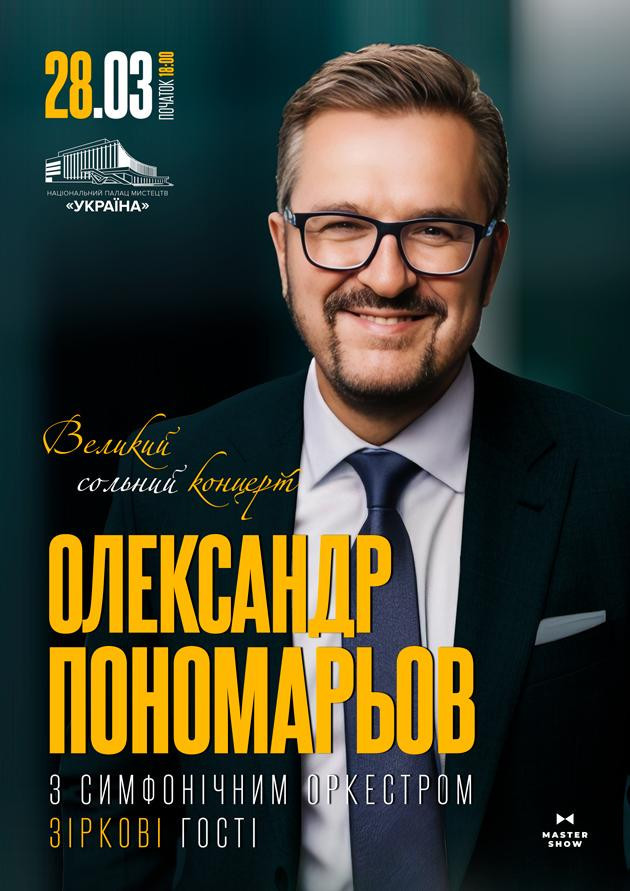 People's Artist of Ukraine, golden voice of Ukraine, magnificent singer, talented poet and composer – Oleksandr Ponomaryov – will perform for you in Kyiv! On March 28, 2026, on the stage of the National Palace of Arts “Ukraine”, a grand program filled with the best songs and new hits will be performed live with a symphony orchestra. Don't miss the opportunity to be part of Oleksandr Ponomaryov's grand concert in Kyiv!