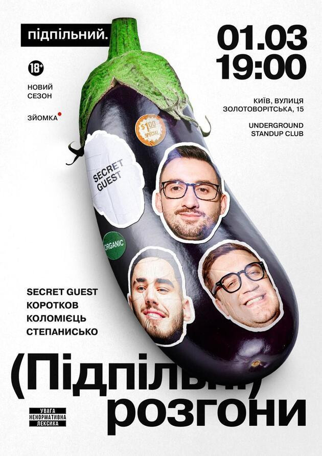 *вхід для бійців ЗСУ та ТРО - безкоштовний (за попереднім записом в інстаграм @undergroundstandupkyiv)