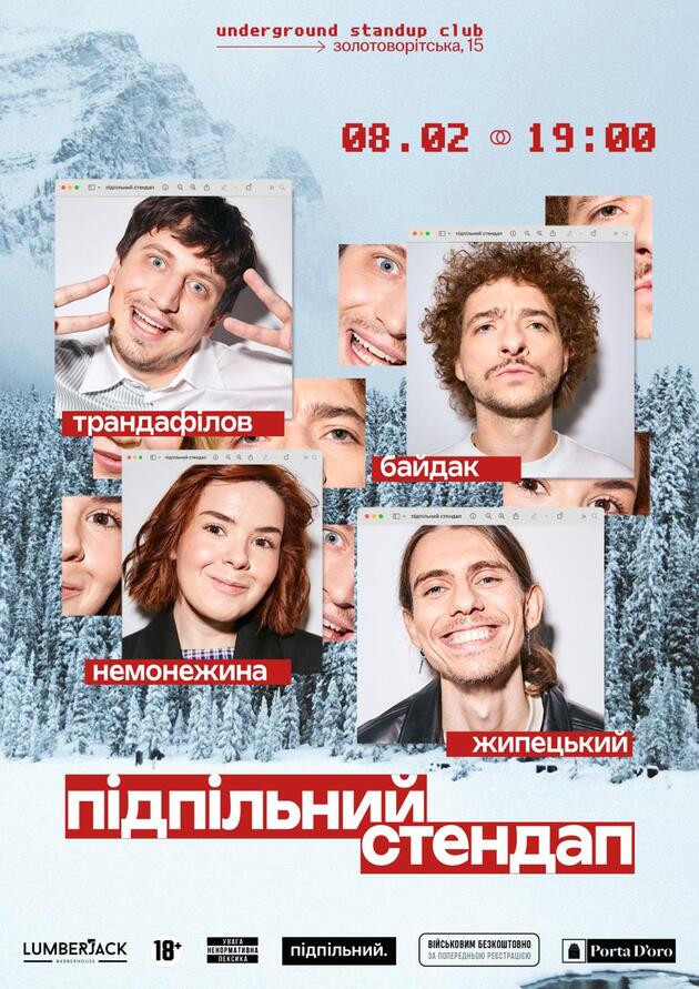 *вхід для бійців ЗСУ та ТРО - безкоштовний (за попереднім записом в інстаграм @undergroundstandupkyiv)