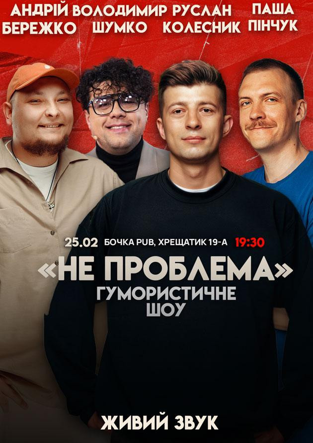 Приходьте, поділіться своїми історіями, і дозвольте комікам зробити їх вечірнім хітом! Ніякої серйозності – тільки сміх і позитив. Ціль шоу в тому, щоб ви вийшли від нас переконаними, що ваша проблема – НЕ ПРОБЛЕМА.
