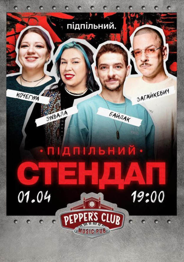 *вхід для бійців ЗСУ та ТРО — безкоштовний (за попереднім записом в Instagram @undergroundstandupkyiv)