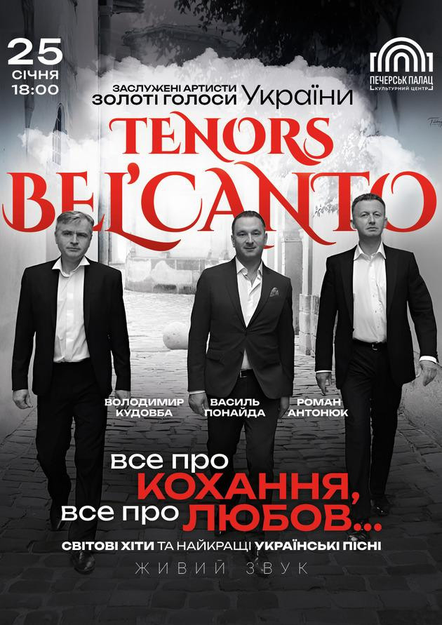 Улюбленці публіки, відомий колектив Tenors BEL'CANTO, який підкорив найкращі сцени Європи та Америки, після довгої перерви завітає до Києва з програмою "Все про кохання, все про любов!".