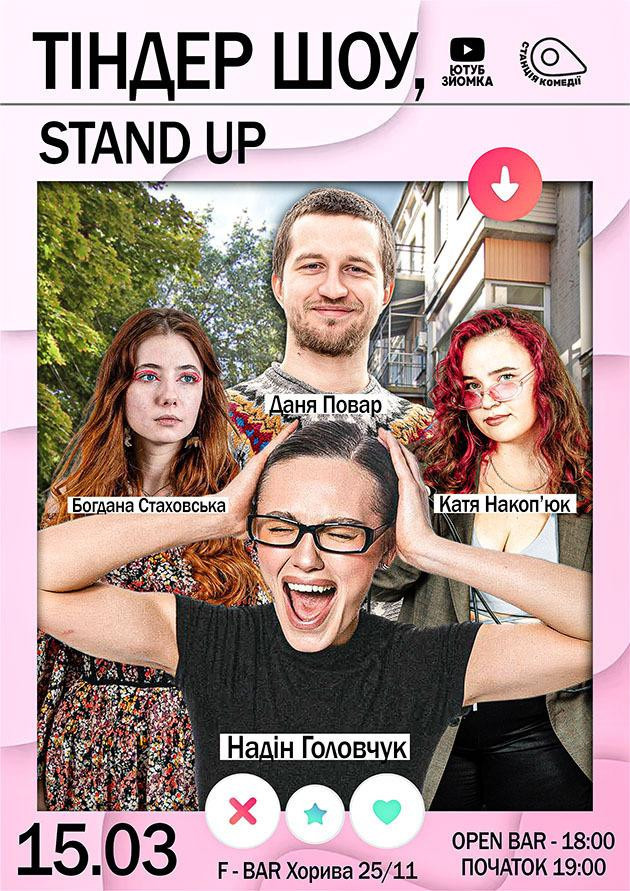 ТІНДЕР ШОУ — крінжові побачення, свайпи й любовні фейли зі сцени.
