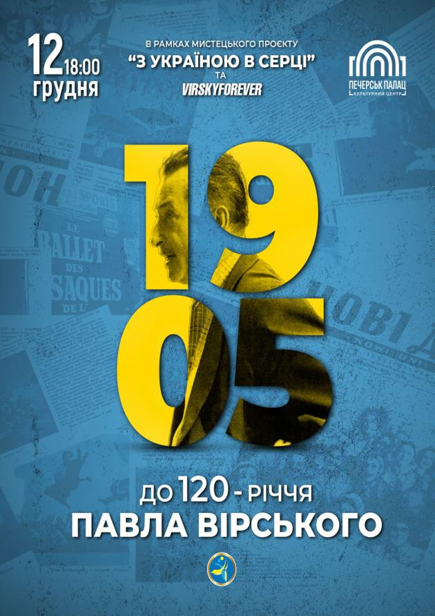 Культурний центр «Печерськ Палац» запрошує Вас на унікальну подію — великий концерт кращих танцювальних колективів України, присвячений 120-й річниці від дня народження Генія українського народного танцю — Народного артиста України Павла Вірського.