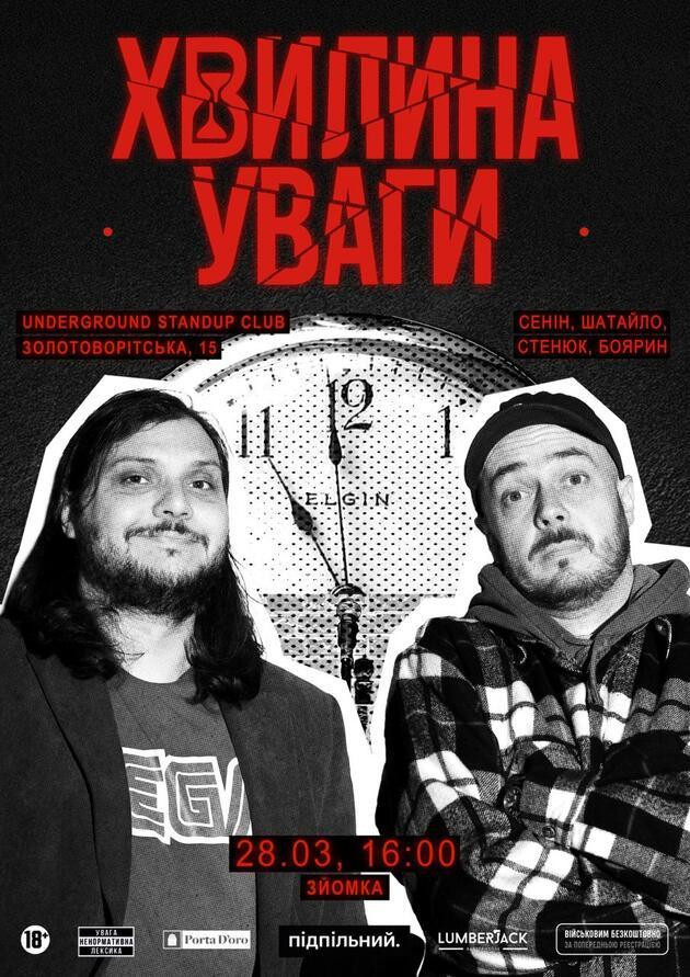 Локація: Underground Standup Club – легендарне місце прекрасного закладу Porta D`oro Trattoria де коміки «Підпільного Стендапу» виступають регулярно.