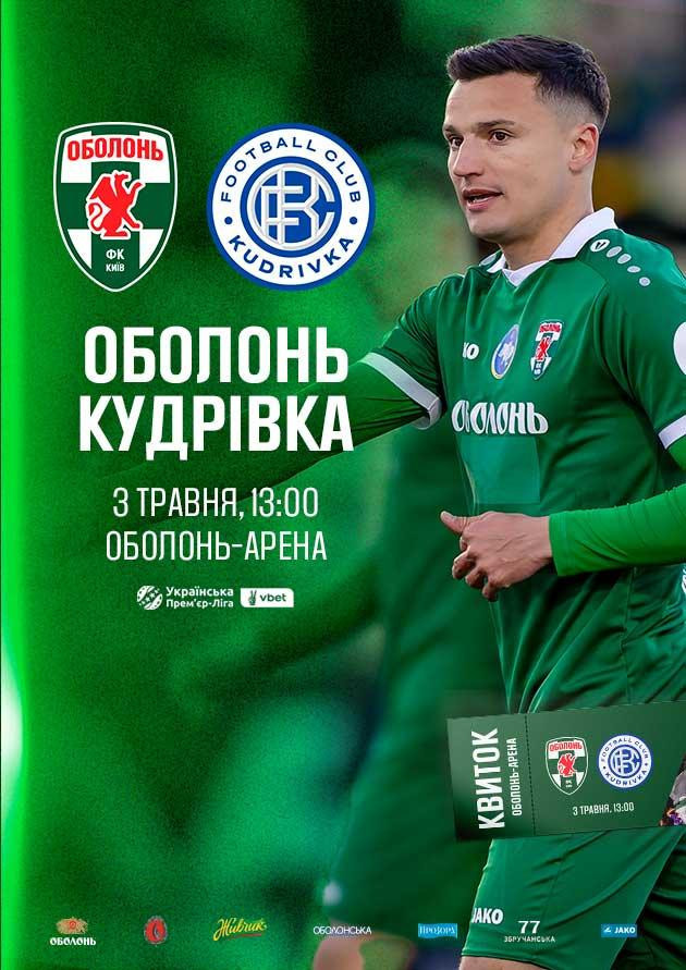 У неділю, 3 травня, о 13:00 «Оболонь» прийматиме «Кудрівку» у рамках 26-го туру VBET Української Премʼєр-ліги!