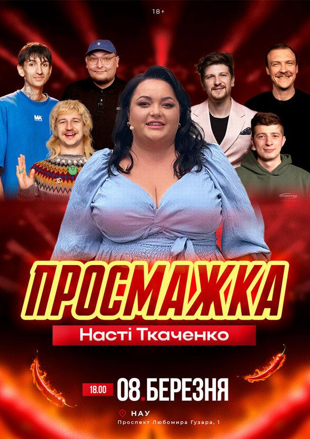 «Просмажка Насті Ткаченко» — вибухове шоу, де зірку вечора безжально обсипають жартами! Коміки бродячого стендапу вийдуть на сцену, щоб максимально жорстко і смішно “просмажити” Настю, не залишивши без уваги жодної теми.