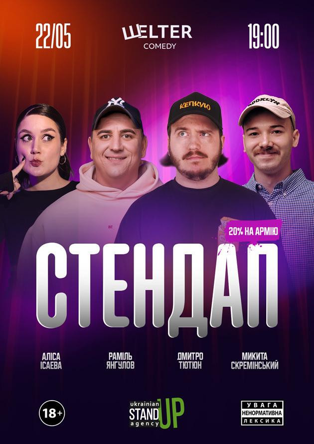 * вхід для військовослужбовців — безкоштовний (за попереднім записом в Instagram @uastandupagency).