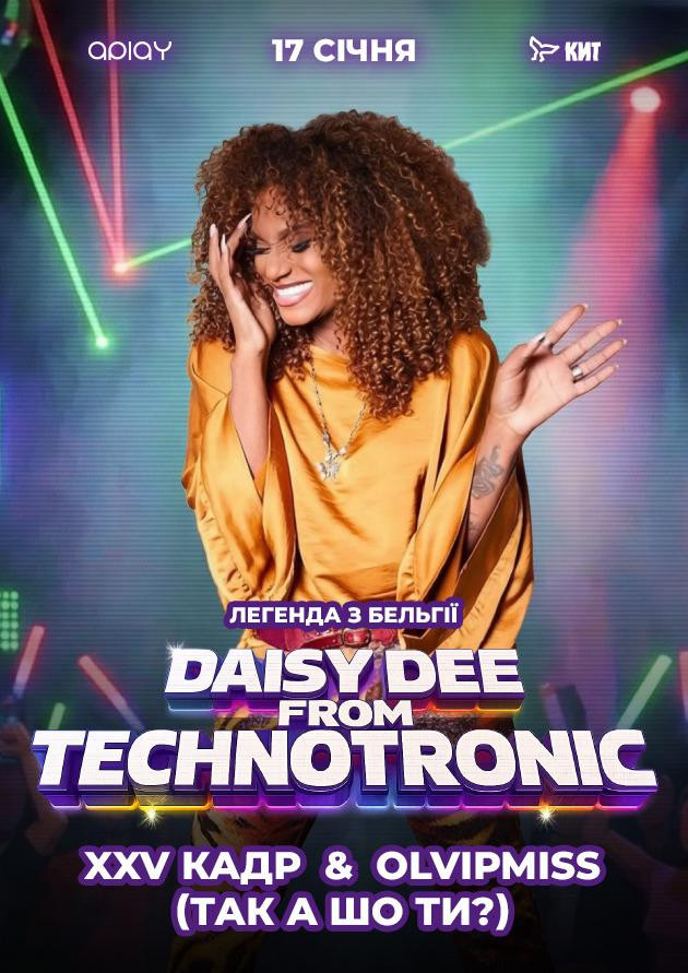 Компанію їм складе легендарна гостя — DAISY DEE from TECHNOTRONIC. Це голос та енергія культового проєкту, що вивів рейви з підвалів на стадіони. Легендарний трек «Pump Up The Jam» знає кожний — це звук часу, це дитинство, це вайб свободи 90-х.