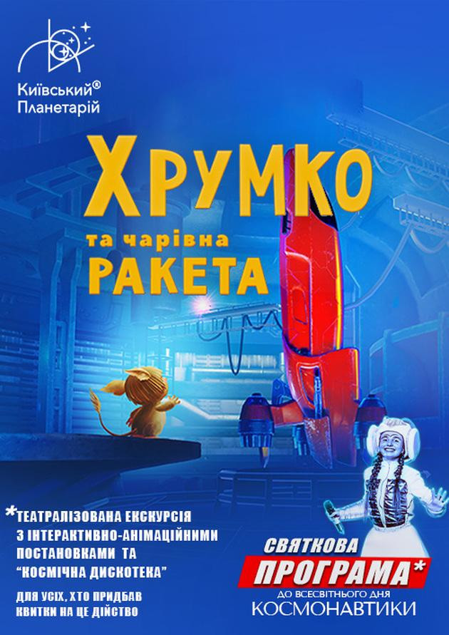Кожен відвідувач матиме унікальну можливість стати безпосереднім учасником подорожі Всесвітом разом з Хрумком у чарівній ракеті. Ви потрапите у казкову лісову школу астрономії, де разом з маленьким Хрумко та його другом вивчите космос, а потім на чарівній ракеті відправитесь в неймовірну подорож Сонячною системою. Компанію Вам складе добрий робот-провідник. Всі разом Ви дізнаєтеся про сонячне затемнення, здійсните політ до Меркурія, Венери, Марса та його супутників, подолаєте небезпеку у поясі астероїдів, а потім наблизитеся до планет-гігантів і навіть побачите комету. На Вас чекає приголомшлива подорож.