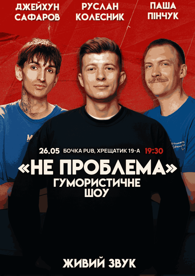 Приходьте, поділіться своїми історіями, і дозвольте комікам зробити їх вечірнім хітом! Ніякої серйозності – тільки сміх і позитив. Ціль шоу в тому, щоб ви вийшли від нас переконаними, що ваша проблема – НЕ ПРОБЛЕМА.