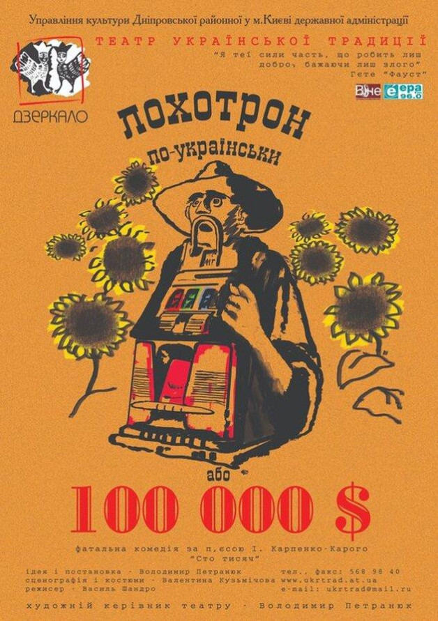 Давня історія, описана І. Карпенком-Карим в п’єсі «Сто тисяч» - дивно повторюється і в новітній історії України. Українець не хоче і не мусить бути ошуканим перехожим у своїй Вітчизні. Це і є головним посланням у фатальній комедії від Театру української традиції «Дзеркало» глядацькій аудиторії, якою і є 41 мільйон українців.