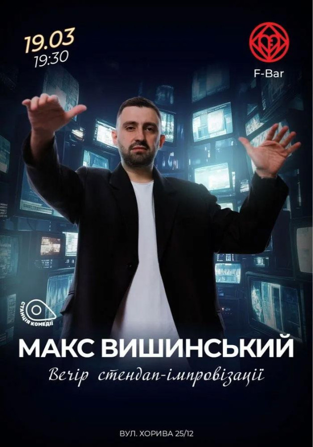 У четвер 19 березня, популярний комік Макс Вишинський запрошує на вечір стендап-імпровізації! Це формат, де глядачі створюють комедію, спілкуючись з артистом «тут і зараз».