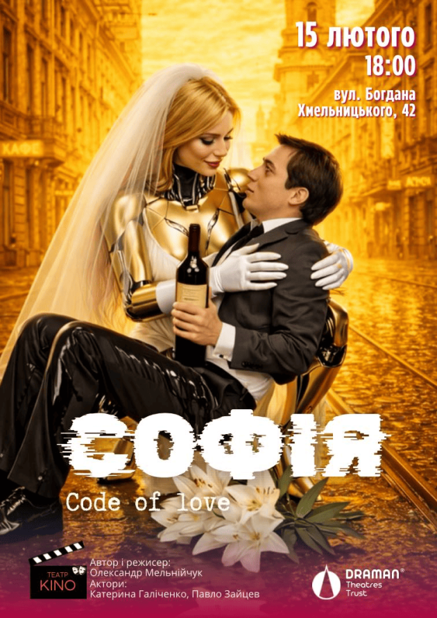 «Софія. Code of love» — вистава не про людину і штучний інтелект, а про самотність, кохання та спокусу контролю, про межу між реальністю та ілюзією.