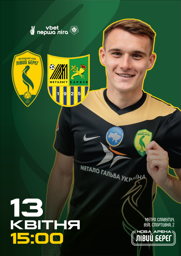У понеділок, 13 квітня, київський «Лівий Берег» прийме харківський «Металіст» у межах 23-го туру VBET Першої ліги.