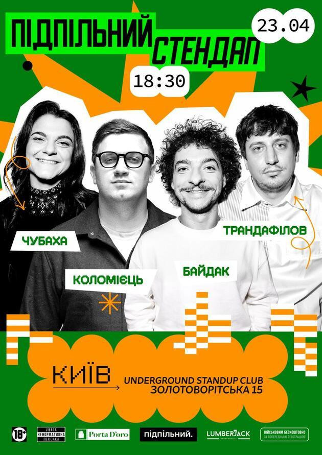 *вхід для бійців ЗСУ та ТРО - безкоштовний (за попереднім записом в інстаграм @undergroundstandupkyiv)