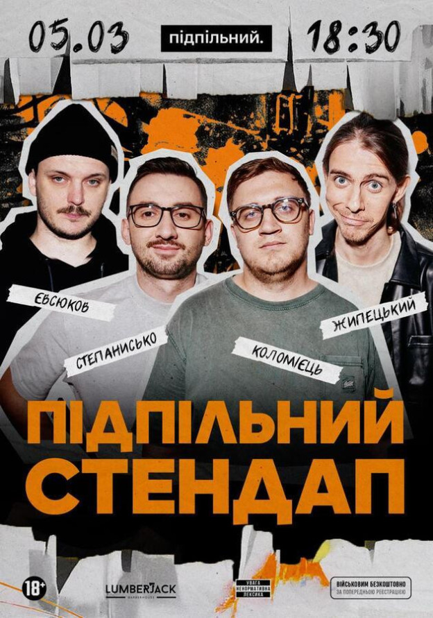 *вхід для бійців ЗСУ та ТРО - безкоштовний (за попереднім записом в інстаграм @undergroundstandupkyiv)