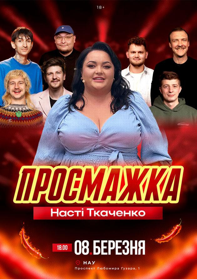 «Просмажка Насті Ткаченко» — вибухове шоу, де зірку вечора безжально обсипають жартами! Коміки бродячого стендапу вийдуть на сцену, щоб максимально жорстко і смішно “просмажити” Настю, не залишивши без уваги жодної теми.