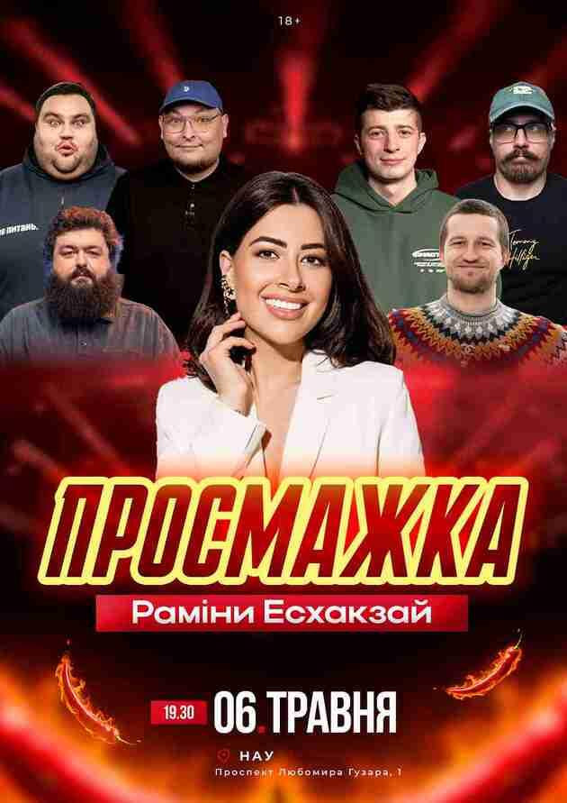 «Просмажка Раміни Есхакзай» — вибухове шоу, де зірку вечора безжально обсипають жартами! Коміки бродячого стендапу вийдуть на сцену, щоб максимально жорстко і смішно “просмажити” Настю, не залишивши без уваги жодної теми.