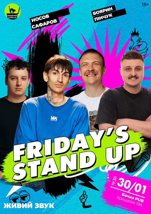 Цієї п'ятниці ми даємо вам унікальну можливість насолодитися непередбачуваним і, місцями, вульгарним гумором від крутих київських коміків, у закладі, розташованому в самому центрі нашої неосяжної столиці. Формат вечора передбачає перебування виступаючого на сцені довше звичайного, що дозволяє не намагатися скоротити думку, а максимально розгорнути глядачеві свій матеріал. 1. Джейхун Сафаров @dzheikhun.s 2. Паша Пінчук @pasha_pinchuk 3. Дмитро Носов @nosovdima 4. Богдан Боярин @bod1qa Ведучий: Ігнат Михайлюк @ihnat_mykhailiuk Коли: 30/01 19:30 Де: Бочка Pub (Хрещатик 19А) Підписуйтесь на Бродячий Стендап в Instagram, щоб знати про всі наші заходи заздалегідь. 18+