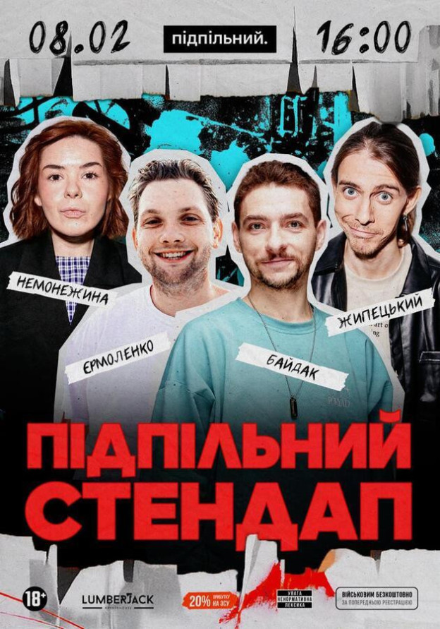 *вхід для бійців ЗСУ та ТРО - безкоштовний (за попереднім записом в інстаграм @undergroundstandupkyiv)