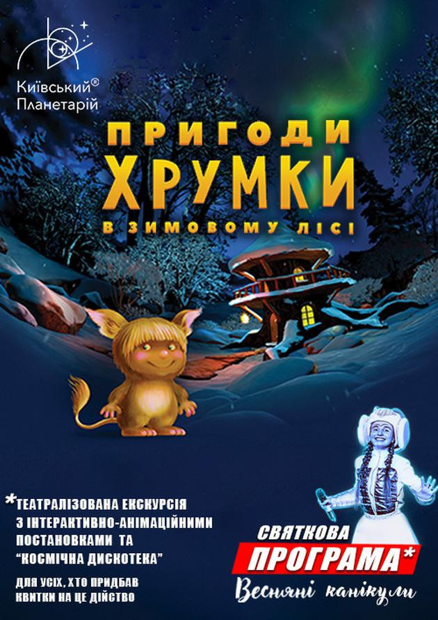 Кожен відвідувач матиме унікальну можливість стати безпосереднім учасником захопливої подорожі казковим зимовим лісом разом з Хрумкою та його друзями, познайомитися з північним сяйвом, поспостерігати за польотом астероїда та милуватися прекрасними сузір’ями зимового неба.