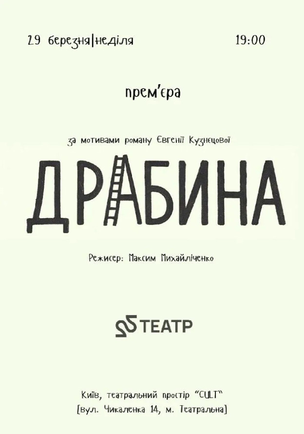 Запрошуємо Вас на прем'єру вистави "Драбина" за мотивами однойменного роману української письменниці Євгенії Кузнєцової.