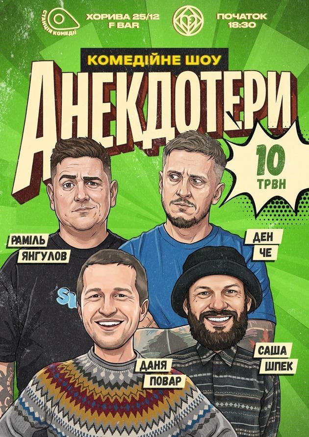 Гумористично-імпровізаційне шоу під назвою «Анекдотери». В якому буде три раунди: у першому ми добиваємо анекдот — придумуємо смішну кінцівку або відгадуємо її; у другому — анекдот навпаки — ми вигадуємо початок анекдоту; і в третьому — кожен учасник розповідає свій анекдот, а інші добивають кінцівку.