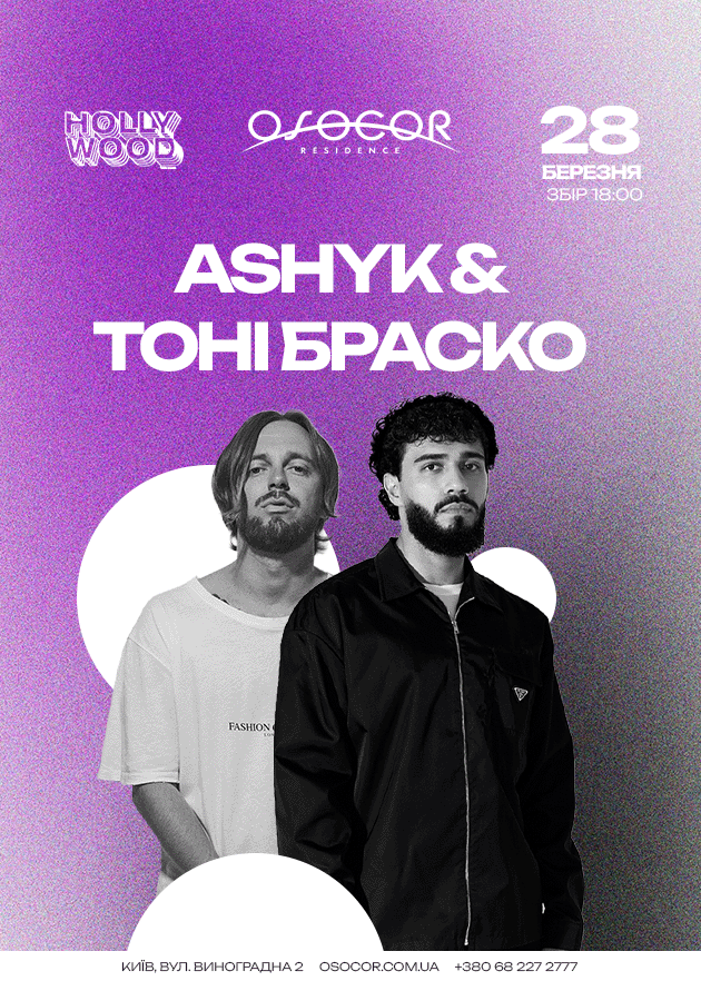 28.03 | Osocor Residence : Тоні Браско та ASHYK об’єднують свої голоси: ексклюзивний виступ в Osocor Residence!