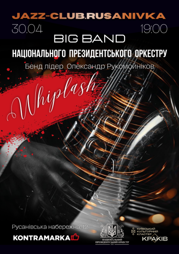 Біг-бенд Національного президентського оркестру презентує програму "Whiplash". Назва програми відсилає до культового фільму (в українському прокаті — "Одержимість"), центральною темою якого став однойменний шедевр Генка Леві, де музика — це виклик, пристрасть та гранична самовіддача.