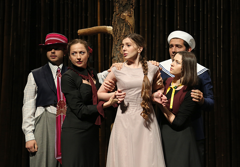Впервые этот спектакль на сцене Леси Украинки поставил Леонид Варпаховский - ученик гениального В. Мейерхольда. Основной метафорой несокрушимости бабушки Эухены был бамбук, который использовали в декорациях. Также это перекликалось со спектаклем самого Мейерхольда "Учитель Бубус".