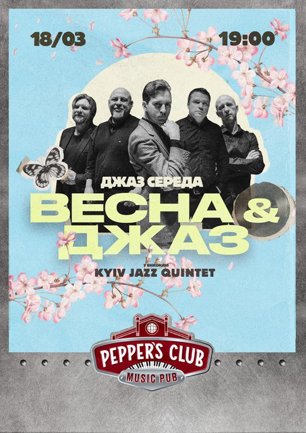 18 березня — Джазова середа. Весняний джаз. Kyiv Jazz Quintet запрошує на особливий вечір, де класика американського джазу заграє новими барвами.