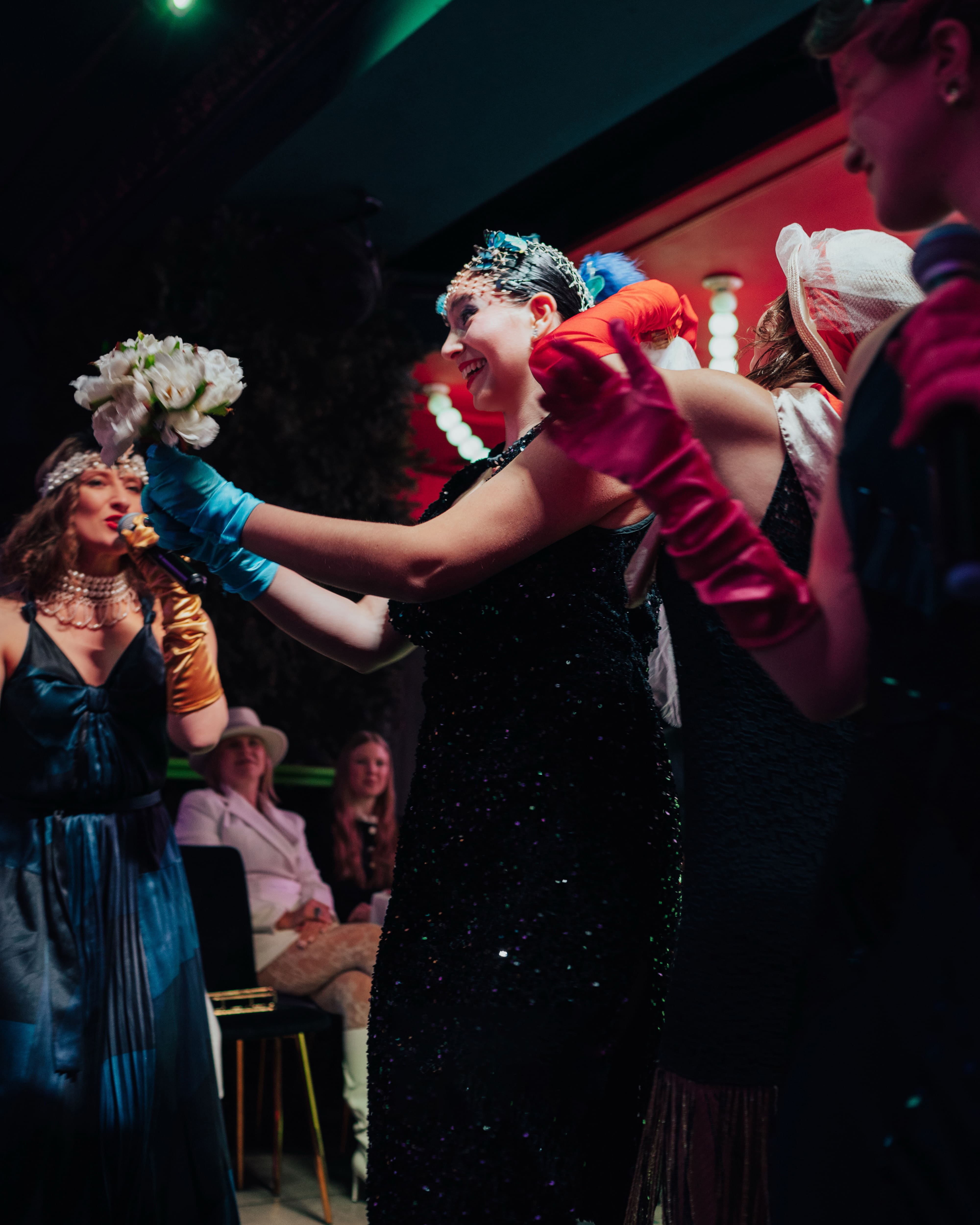На вас чекає інтригуючий сюжет, запальні танці та виконання хітів 30–40-х років під шалені ритми live jazz band та живого вокалу неймовірних близнючок The Jazzy Sisters.
