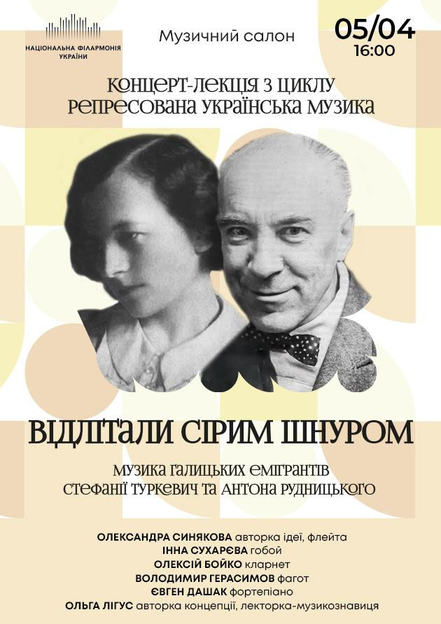 Концерт-лекція «ВІДЛІТАЛИ СІРИМ ШНУРОМ…» МУЗИКА ГАЛИЦЬКИХ МІГРАНТІВ – СТЕФАНІЇ ТУРКЕВИЧ ТА АНТІНА РУДНИЦЬКОГО» – четвертий із п’яти заходів проєкту «Репресована українська музика». Цей проєкт входить до абонементу НФУ, запланованого на концертний сезон 2025-2026 рр.