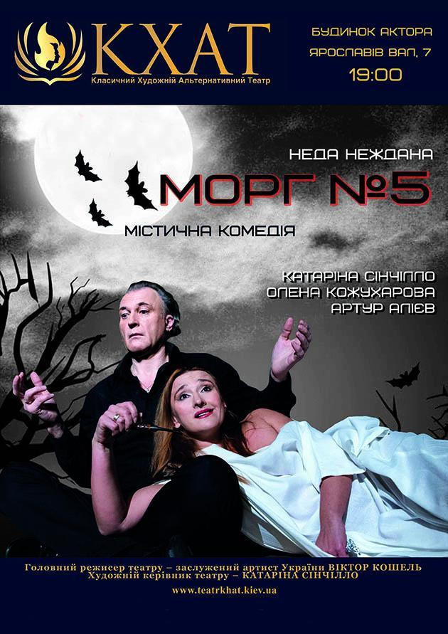 Главные героини - две девушки, каждая со своей историей, оказавшиеся взаперти в мрачном подвале морга, в полной изоляции от окружающего мира. Кто-то оборвал телефонную связь, но звонки все равно раздаются - таинственный голос просит сделать выбор… О чем он нашептывает? Оставшись наедине, девушки разговаривают между собой, делясь своими страхами и откровениями друг с другом. В роли их пастора выступает Кот, оказавшийся запертым вместе с ними. Они подкармливают и ласкают его в моменты спокойствия, и ругают, отталкивая, когда разговор становится раздражительным. Но история не о женщинах и не о коте - она о человеческих добродетелях и пороках, важном выборе, который делает в жизни каждый из нас, патриотизме и борьбе за свое личное счастье. Как и все спектакли КХАТа, “Морг №5” имеет совершенно неожиданную кульминацию и развязку. Убедитесь сами - это будет смешно до ужаса! О других интересных спектаклях в театрах Киева узнавайте из нашей афиши.