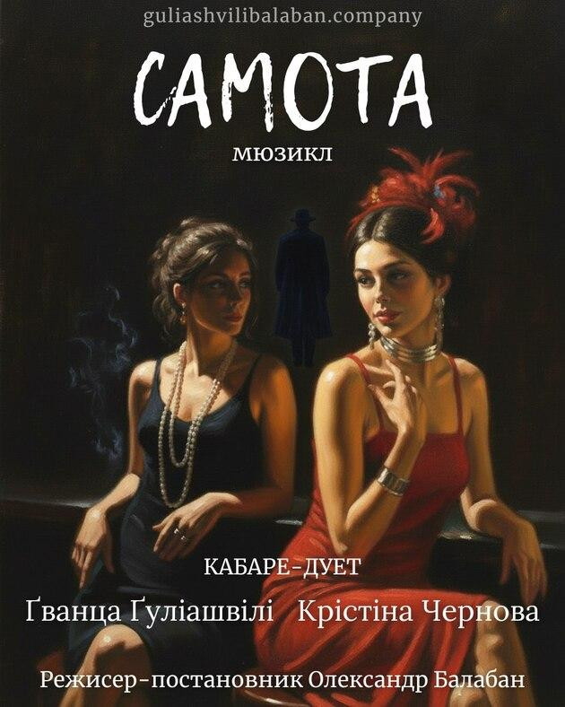 На сцені — шалений кабаре-дует. Дві жінки. Два голоси. Два дзеркала однієї історії. Вони сміються гучно, співають зухвало, танцюють так, ніби намагаються втекти від тиші… але щоразу повертаються до неї. Це історія про богемного українського композитора, якого забули у власній країні. «Самота» — це про митців, яких не почули. Про любов, яка не отримала відповіді.