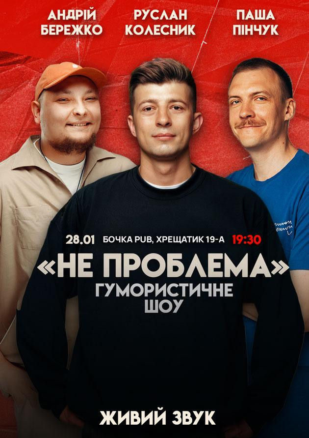 Приходьте, поділіться своїми історіями, і дозвольте комікам зробити їх вечірнім хітом! Ніякої серйозності – тільки сміх і позитив. Ціль шоу в тому, щоб ви вийшли від нас переконаними, що ваша проблема – НЕ ПРОБЛЕМА.