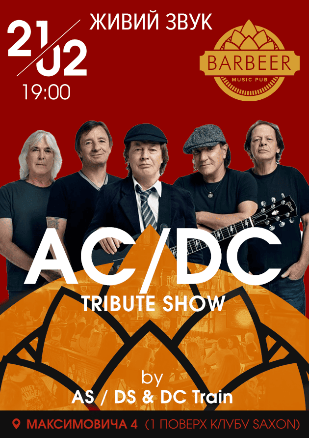 Ви готові? Ви готові почути кращі хіти AC/DC за п'ятдесят років! Гурти AS/DS та DC Train презентують триб’ют легендарних австралійців. Максимум шаленої енергії, наелектризовані пісні, повний відрив - ось що таке AC/DC Tribute у Києві. Ви маєте бути присутні на цій події особисто! Це буде щось неймовірне та незабутнє!
